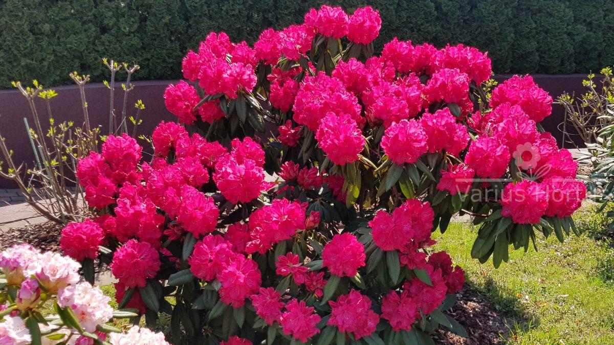 Różanecznik Catawbiense Grandiflorum – odmiana została wyhodowana pod koniec XIX wieku na bazie pochodzącego z Ameryki Północnej różanecznika fioletowego (Rhododendron catawbiense) w szkółce Anthonego Waterera w Knaphill, w Anglii.