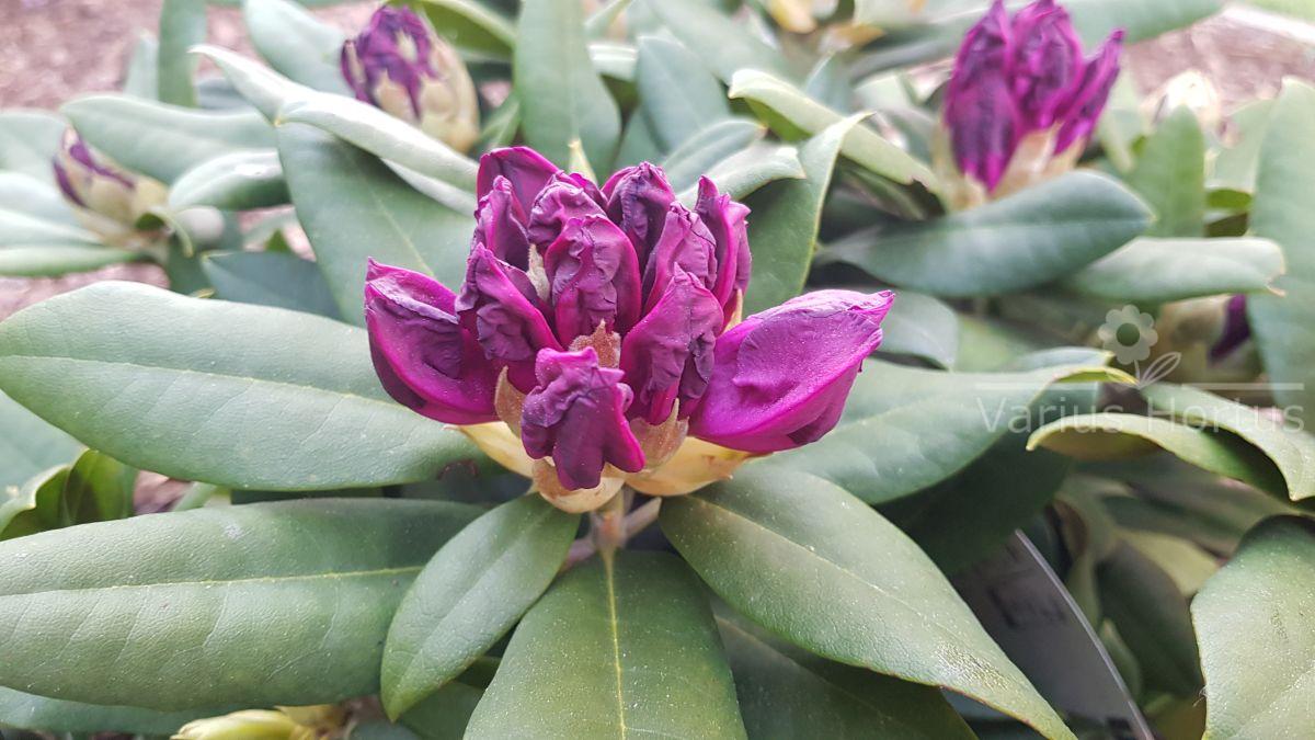 Struktura krzewu zwarta, wzrost niezbyt intensywny, przewidywana wysokość, zgodnie z etykietą, ok. 70 – 80 cm. Fioletowy kolor kwiatów jest rzadkością wśród odmian rododendronów jakuszimańskich.
