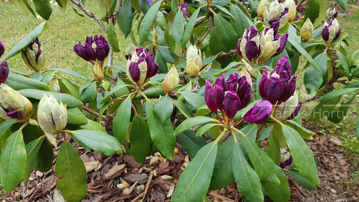 Różanecznik odmiany Marcel Menard trafił do naszego ogrodu w roku 2016.