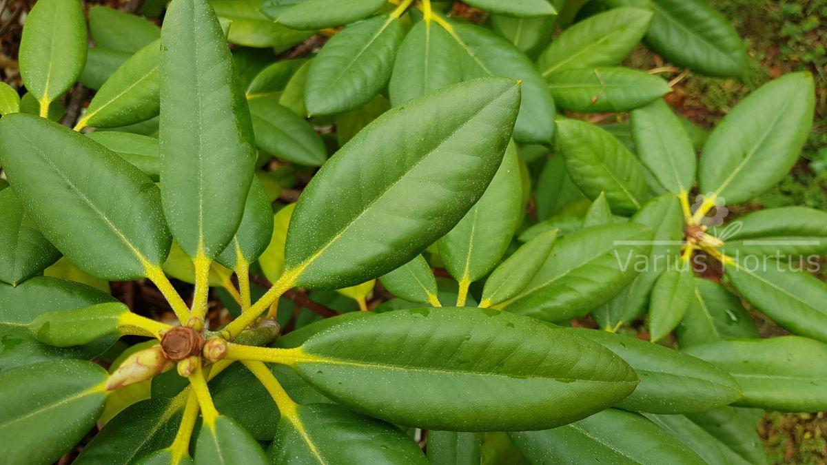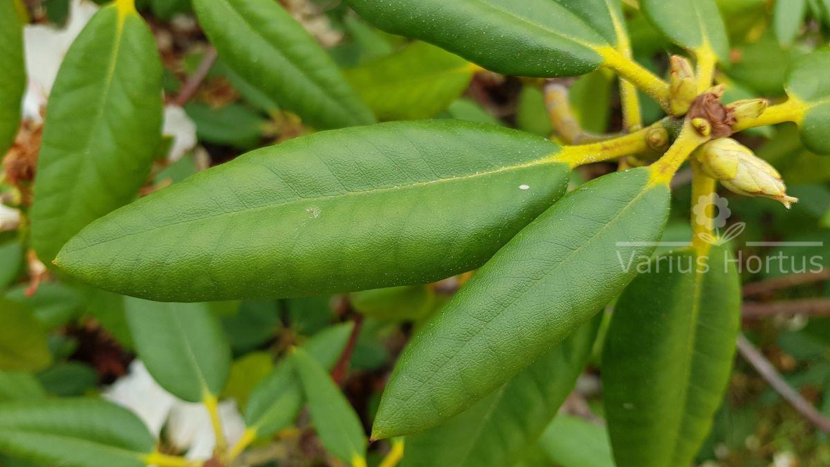 Liście różaneczników mają zazwyczaj fakturę skórzastą w kolorze ciemnej zieleni, w większości odmian są zimozielone.