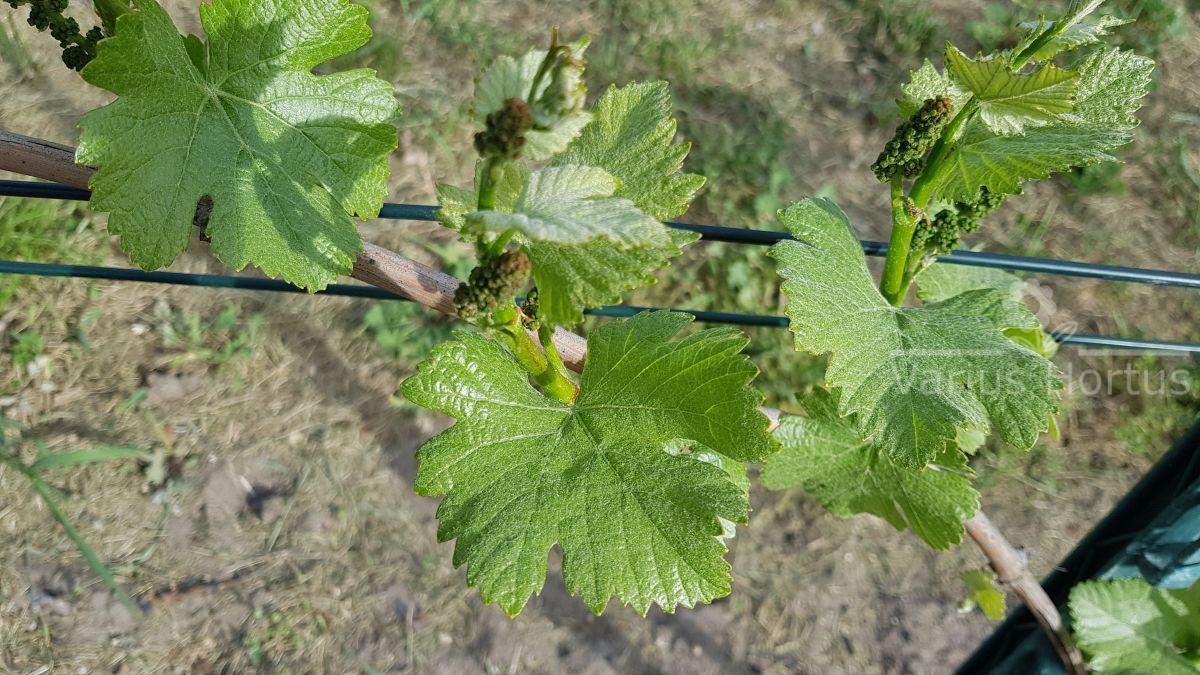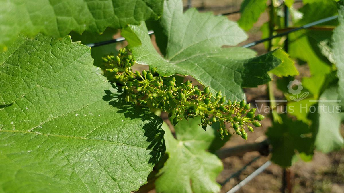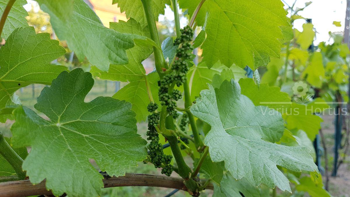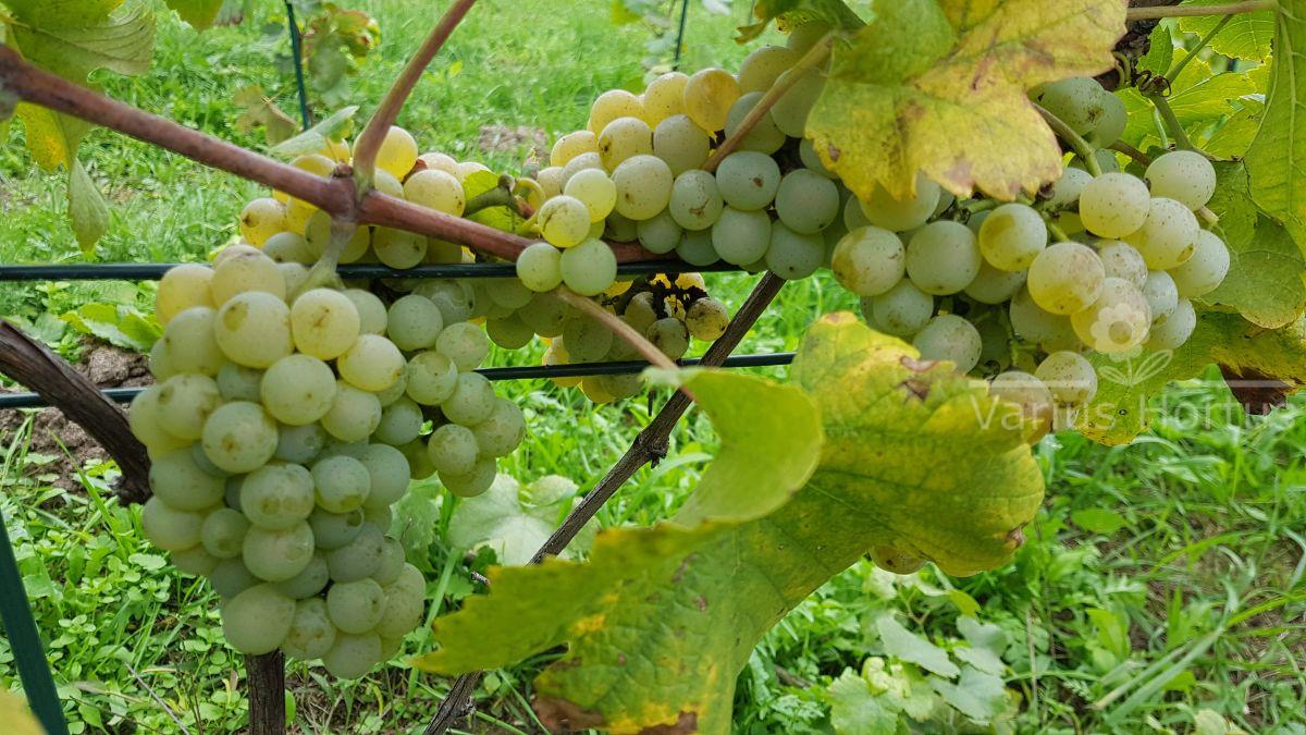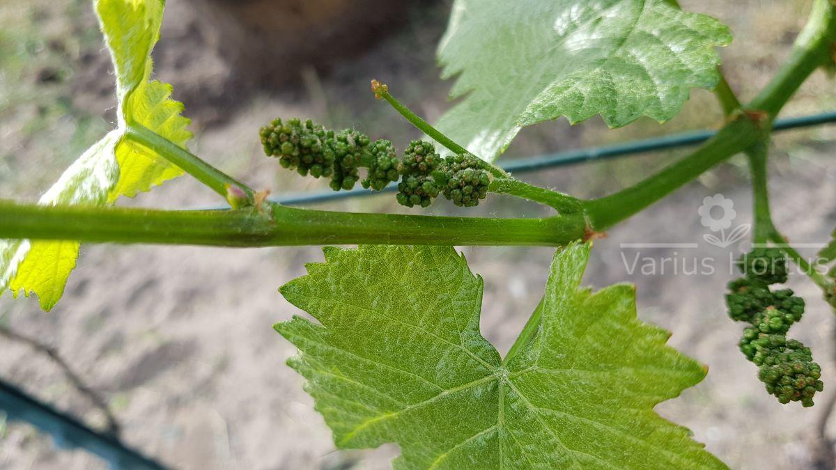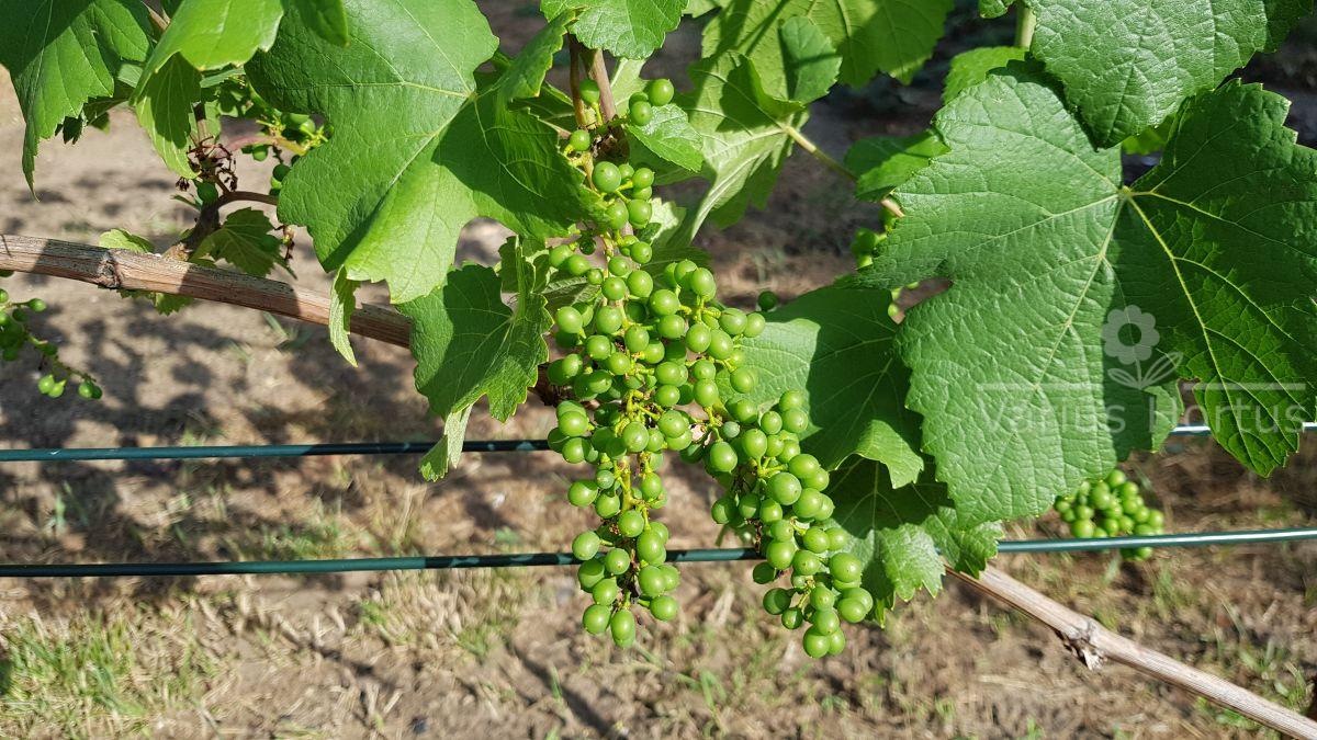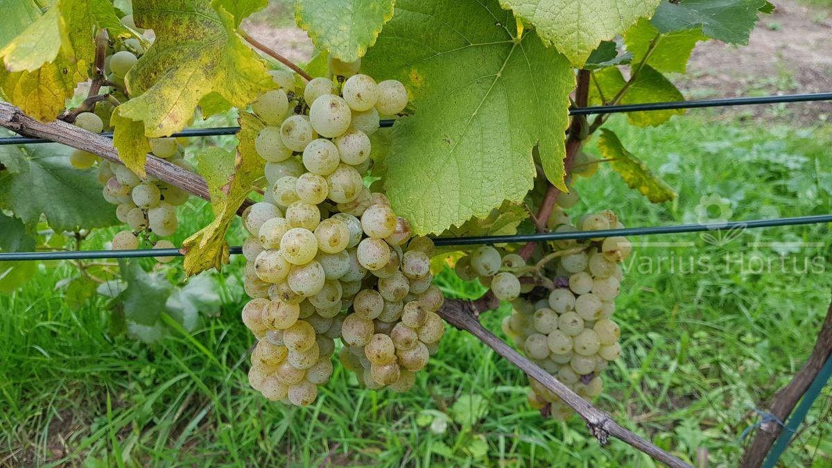Grona niezbyt duże i dosyć zwarte, jagody kuliste o średnicy 12-13 mm.